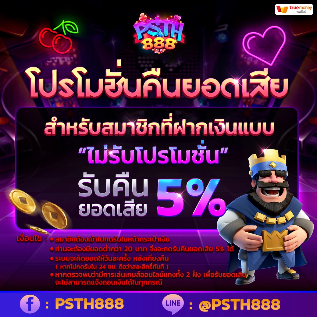 PSTH888 เป็นเว็บพนันออนไลน์ที่ให้ความสำคัญกับการมอบประสบการณ์ที่คุ้มค่าแก่สมาชิกผ่านโปรโมชั่นและกิจกรรมสุดพิเศษมากมาย เพื่อนๆ ที่เป็นสมาชิกใหม่จะได้รับโบนัสต้อนรับสุดพิเศษถึง 100% สำหรับการฝากครั้งแรก ซึ่งสามารถนำไปใช้เล่นได้ทั้งคาสิโน สล็อต และกีฬา